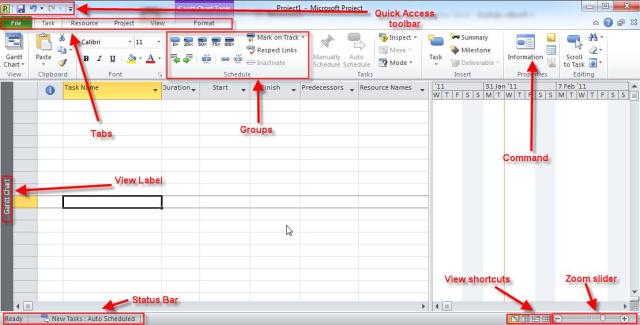- The View Label is placed along the left edge of the active view. Because MS Project has many views, it is a very helpful reminder of “where you are” i.e. what active view you are using at the moment