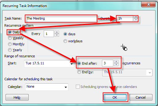 Those two types of over allocation resolutions are very simple if you have one resource, one recurring and one simple task, as I have. But if you have a lot of tasks, a lot of resources, and a lot of over allocations it will be almost impossible to resolve those over allocations manually.