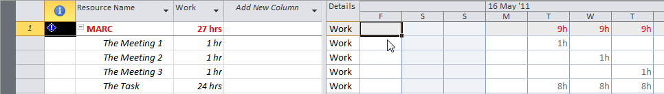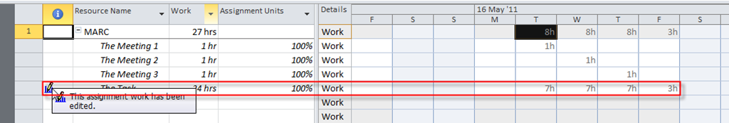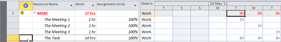 Another way of resolving over allocation for MARC is to add the Assignment Units column in the Resource usage View: