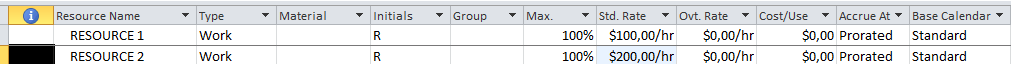 Finally I will Set up different Availability to each resource. I should open Resource table if I want to do that. I will choose RESOURCE 1 and I will make him available from 01.06.2011 to 20.06.2011 with 100% units (availability), and from 21.06.2011 to 30.06.2011 with 50% units (availability):