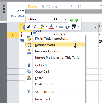 First I will choose Reduce work and I will get (Open Resource Usage sheet):