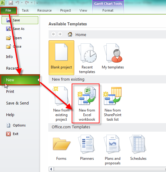 1. Open MS EXCEL 2010 and on the File Tab click New: