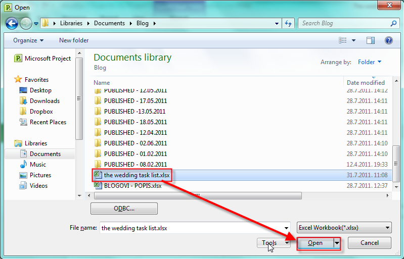 1. Open your project plan in which you want to import your task list (our Wedding Project)