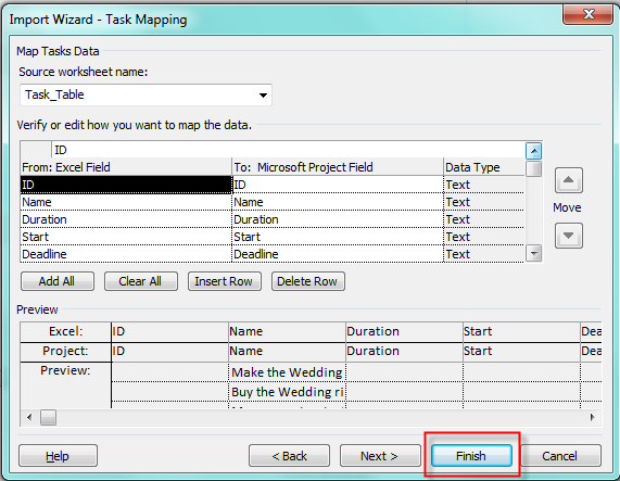 7. Because I want only to import tasks from my excel choose Tasks and click Next: