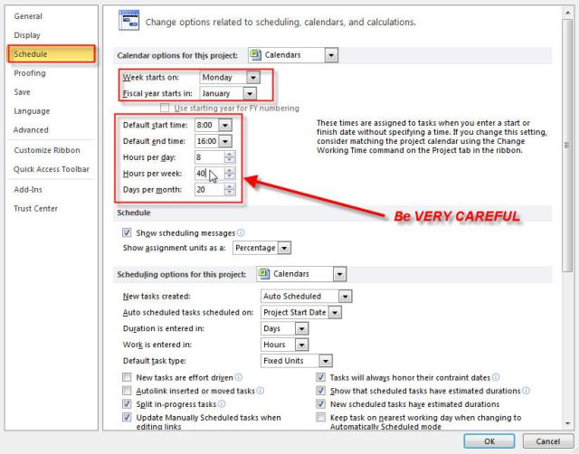 As you know, from my previous posts, working time in MS PROJECT 2010 is set up in a Backstage view: