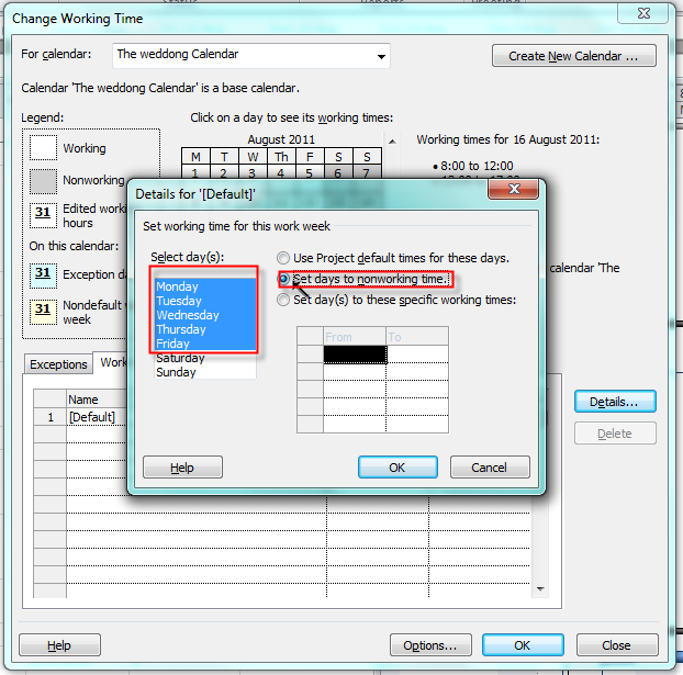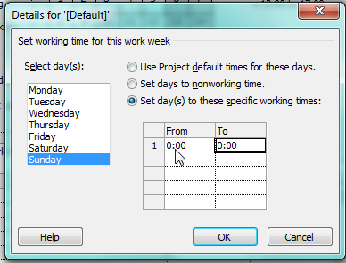 No I will set working time from Saturday 08:00 to 00:00 and Sunday from 00:00 to 00:00: