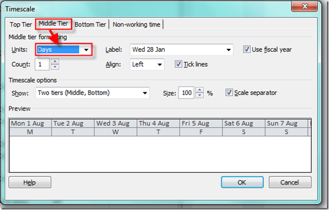 I want in middle Tier to have days: