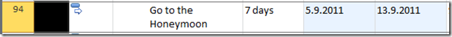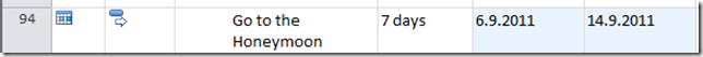 The duration id 7 days and the start date is 06.09.2011 and the finish date is 14.09.2011. WHY? You know why. Because Saturday and Sunday are not working days. So, our wedding couple should go back to home during the weekend, and then go back to the honeymoon, and the honeymoon will be from 08:00 to 17:00? NO