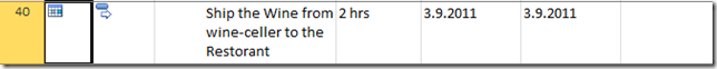 I put the Start date 03.09.2011 (the wedding date) with 10 am for the Task 40 Ship the Wine from wine-cellar to the Restaurant, because it has to be shipped at the wedding they but BEOFRE THE WEDDING