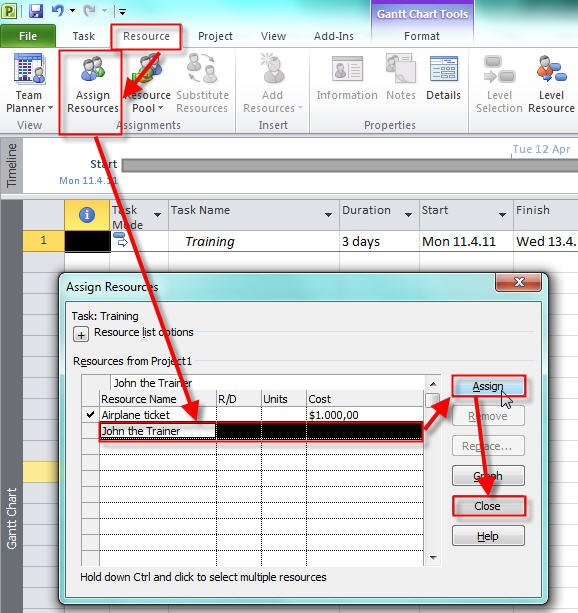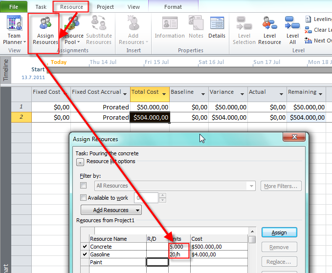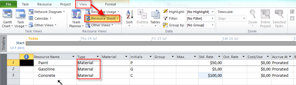 Assigning Material and Cost Resources in MS PROJECT 2010