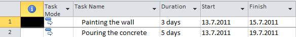 O.K. Now, I will assign Paint to the Painting the wall task, and Gasoline, and Concrete to the Pouring the concrete Task: