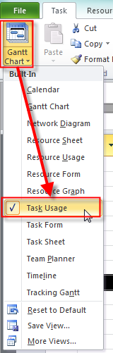 Now suppose that you want to track Actual work in hours per Resource for each task! First you should open Task usage view:
