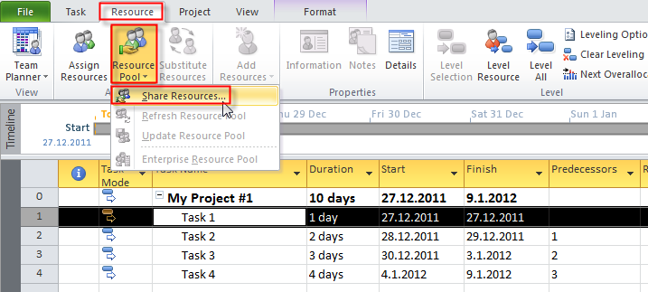 Sharing Resources among Projects with MS Project 2010 – Part 1