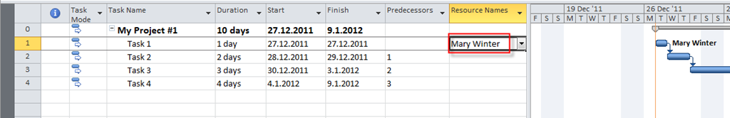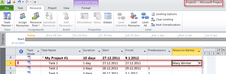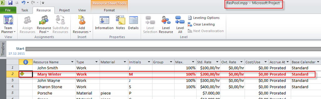 I will now open the brand new Project and I will do the same thing with Mary, using the Resource Pool: