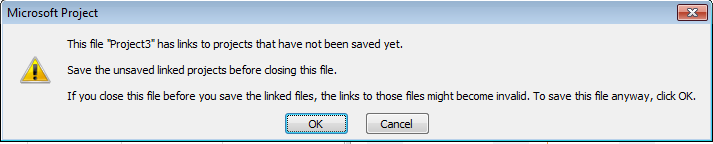 To avoid any conflict I will click on the Cancel button, and I will save the Resource Pool first, and then my Project file! I will get the same message but I will click on OK button!
