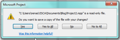If you don’t want to use Project Server, the best thing is to use Master Project, and than each of your project can be seen as Subproject, evene if it is not subproject. In that case you will see all our projects, resources etc., so you should not be concerned about Master Project, because it will be only a spaceholder for aal your projects. I’ll write a Blog about that tomorrow!