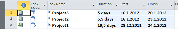 In my previous post I have described how to put subprojects in a Project, and how to make “Master-Slave” Relationship in MS PROJECT 2010. It looks like this: