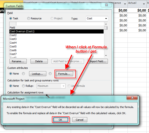 - If my Actual Task Costs are exceeding my Baseline Costs up to $1.000, I want to see Yellow Light in My Gantt Chart View (Entry Table)