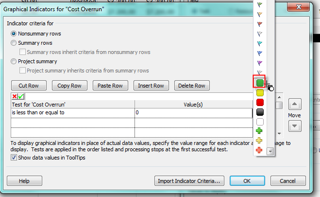 - If my Actual Task Costs are aligned with my Baseline Costs I want to see Green Light in My Gantt Chart View (Entry Table)