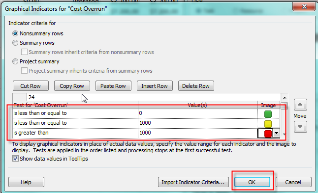 - If my Actual Task Costs are exceeding my Baseline Costs more than to $1.000, I want to see Red Light in My Gantt Chart View (Entry Table)