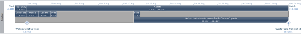 Task is on the Timeline. Since the Timeline View make sense only if I have a group of Tasks on it I will put the whole Family meeting, and Guest task group on it like this: