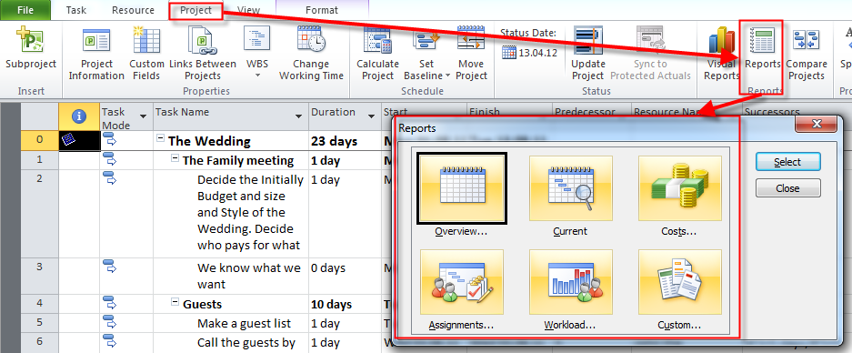 I will show you what kind of reports you can use in MS PROJECT 2010.