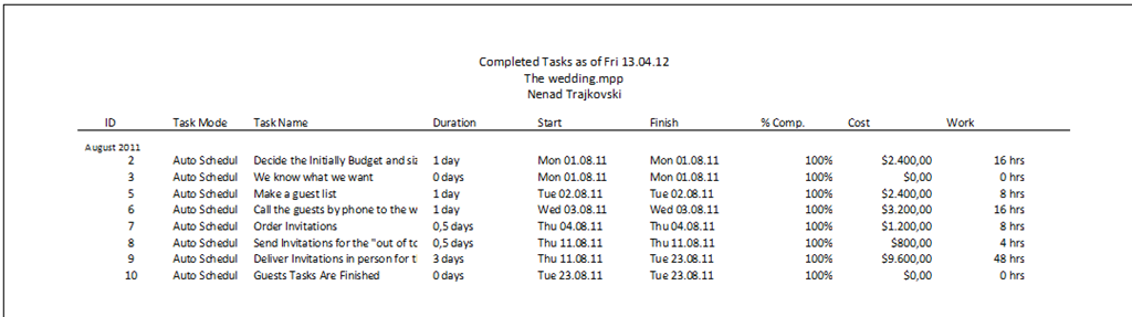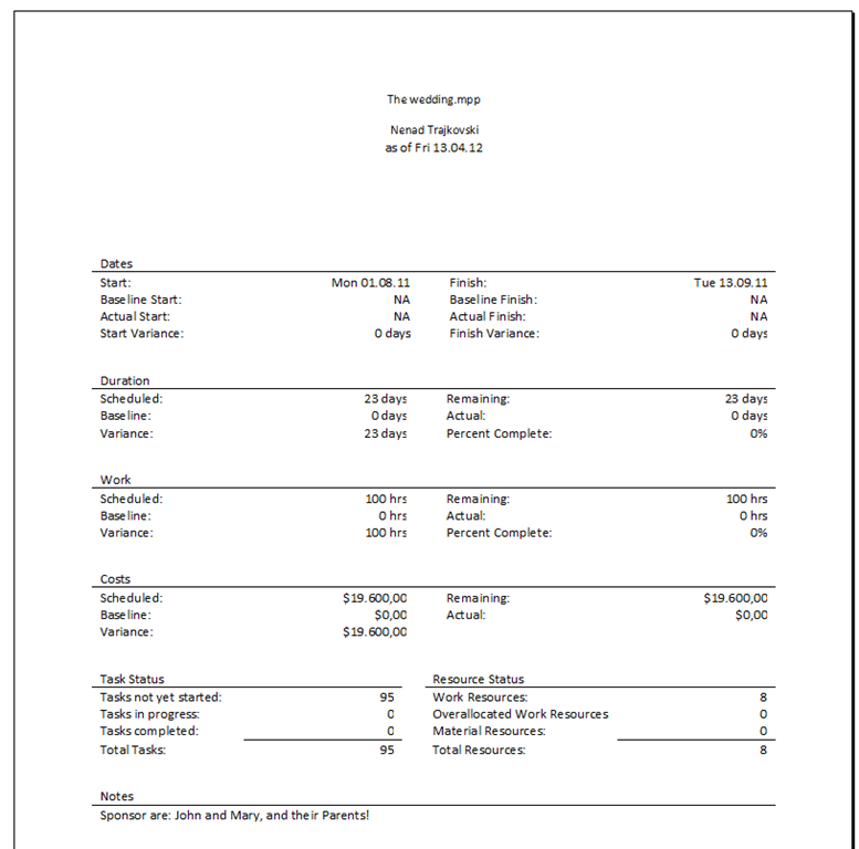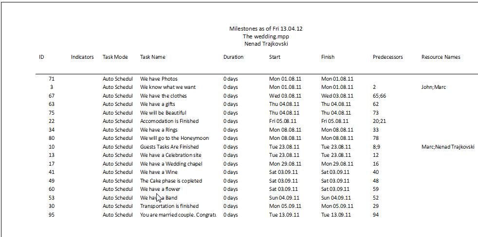 Now I will show you a Milestone Report which is excellent for your Sponsor and Managers: