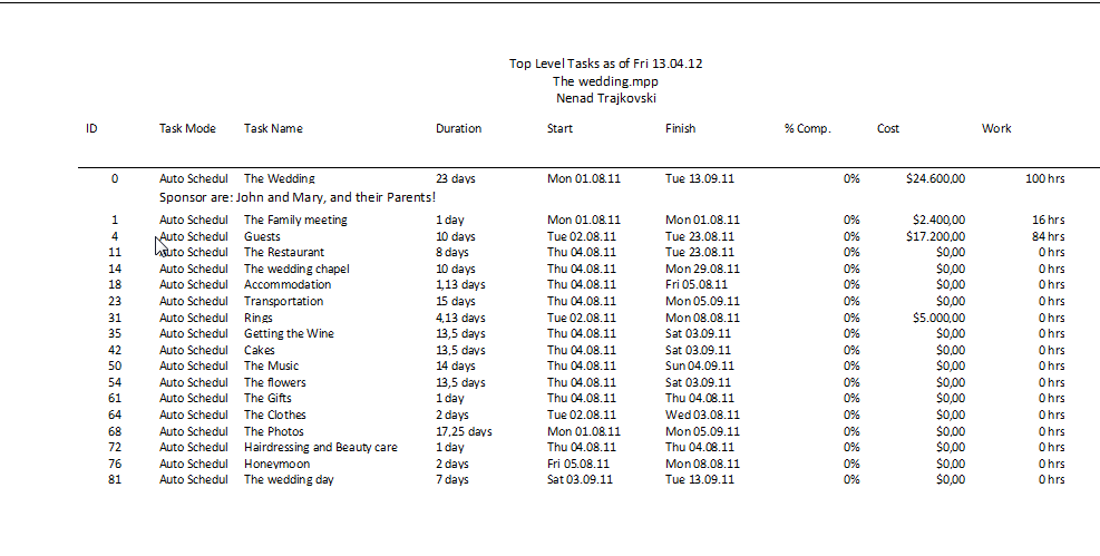 Next report is Top Level Tasks (I don’t have to explain what does that means):