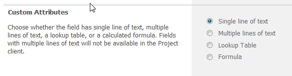 • Multiple lines of text – you will choose that if you want to enter multiple lines of text in this field. If you choose that, you will not see in Project information Tab in MS PROJECT PROFESSIONAL 2010!