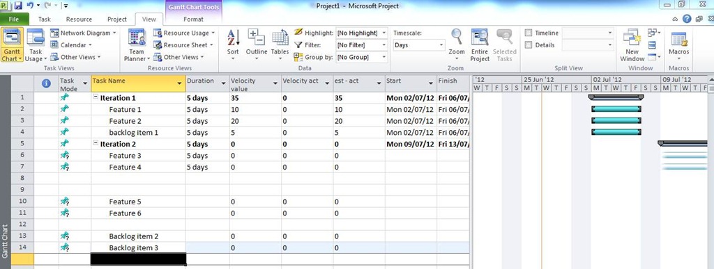 If you want to use MS PROJECT with agile methodology, you can (I say you can, I didn’t say you MUST!). You can modify it for yourself in a very, VERY, VERY (did I say very?) short time. My MVP buddy from UK, Ben Howard (www.applepark.co.uk) gave me permission to show you what he did! Why didn’t I do it? I have very reasonable explanation. I am lazy, and Ben is good colleague