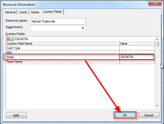 Here I can see all custom fields which belongs to me, and I will put CROATIA in State Field