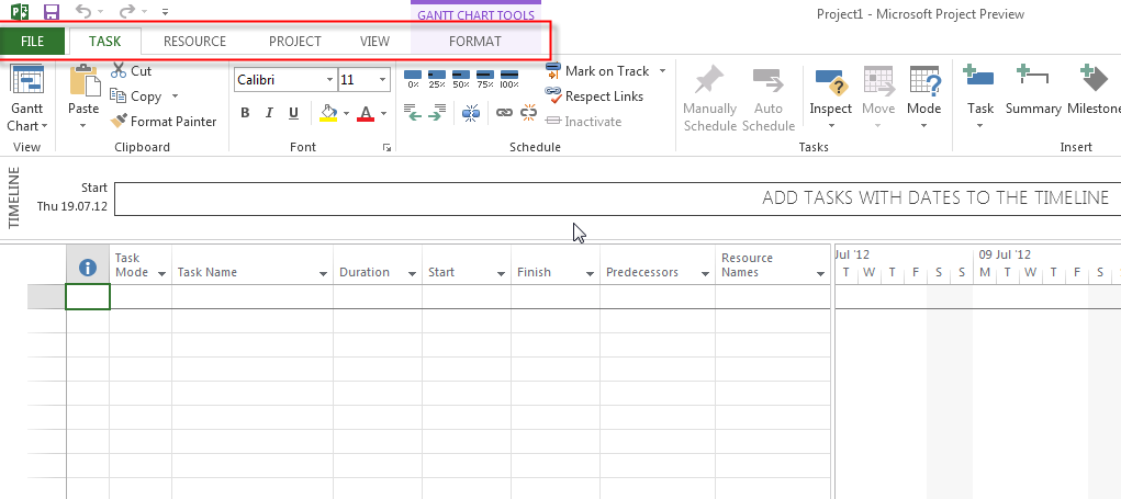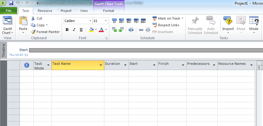 As you can see, you have open brand new Project with default View – Gantt Chart.