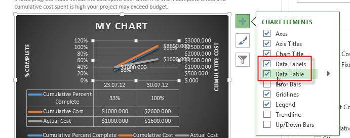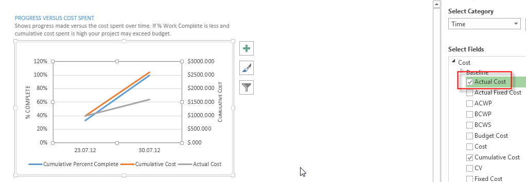 I will Select the Upper Right chart, Progress Versus Cost Spent, and I will do some modifications: