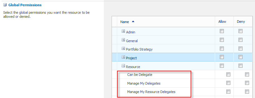 - Manage My Resource Delegates: with this permission user can set up delegations for other users