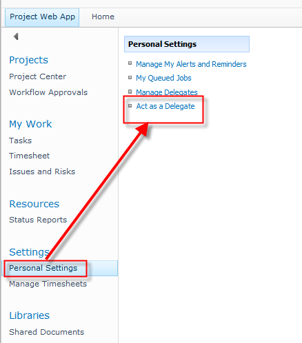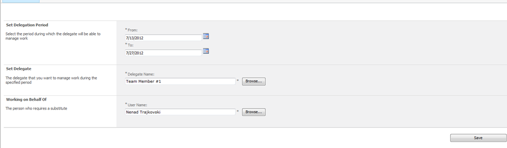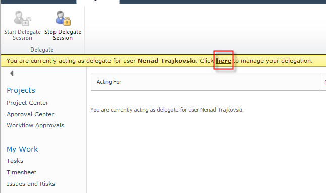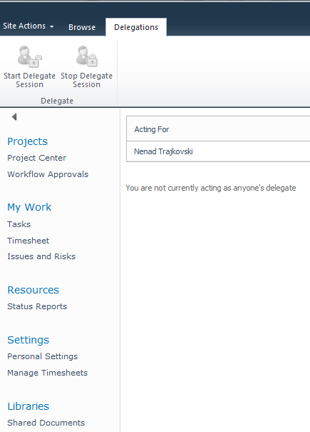 Suppose, just for example, that I am Microsoft Project Server 2010 Administrator, and that I will be on my holidays next two months! I want to make another user as a Administrator while I’m on my vacation. I can give him/her Administrators permission, or I can give him/her “delegation”, so him/her can act like me!
