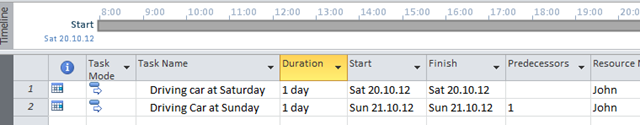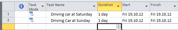 Now I will put Saturday 20.10.2012 as a Start Date for the first Task: