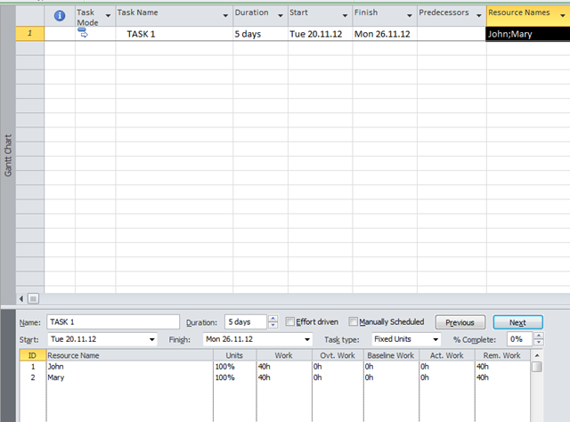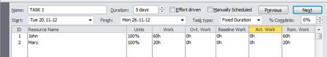 As you remember from my Previous Post, the Relation between Units, Duration and Task is: DURATION * UNITS = WORK