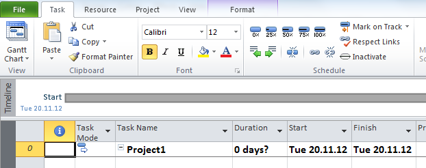 Where is the Problem in MS PROJECT 2010? Let us see. First I will Create a Project with one Task: