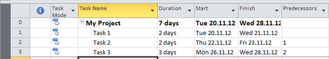 Piece of cake! Firs I will make a brand new Project with 3 Tasks: