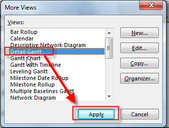 Now I will apply Detail Gant View: