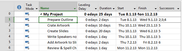 As you can see, My Project will take 25 days!