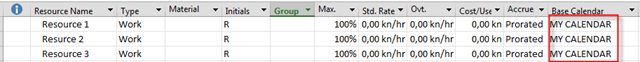 As you can see, because I  have assigned MY CALENDAR to the whole Project every new Resource will have by default this Calendar as a Base Calendar.
