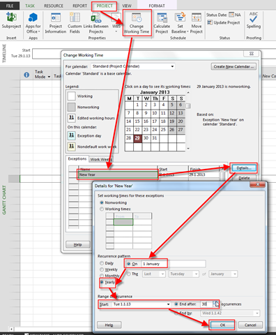 As you can see this task will start on Tuesday, 29.1.2013, and it will be Finished at Tuesday 5.2.2013. Why?