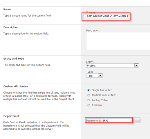 Now let’s suppose that Project Manager Projman1is logged on the Project Server 2010 and he wants to Create new Project with no Department field!