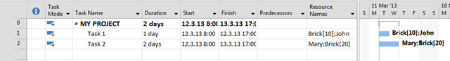 I will assign Mary, and 20 Bricks to the Task 2, and I will get: