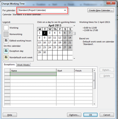 For example I start off with setting up the project calendar as standard, and then I decide that a particular task needs to be worked on over a weekend.