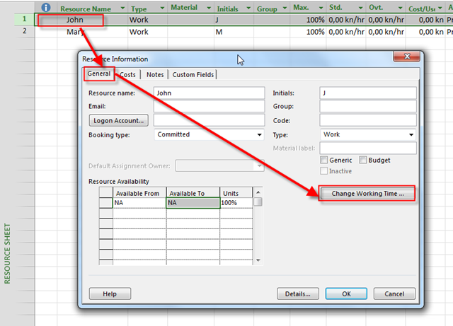 But, if you want to make those two days only for particular Resource (let say John, or Mary), that you should modify John’s calendar!