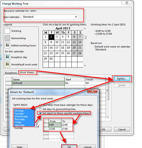 To conclude, if you want to make non working days to working days for particular resources, you can make your own Resource Calendar, or modify existing Calendar for particular Resources!