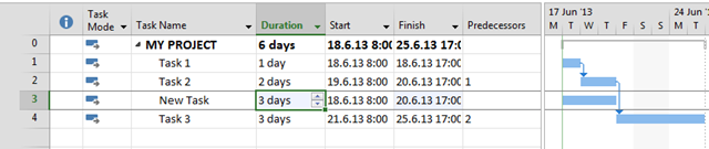 Now, I’m going to insert New Task between Task 1, and Task 2: