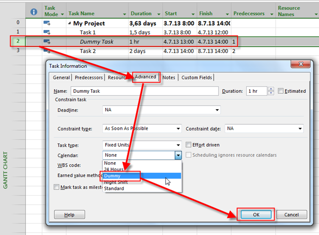 • DO NOT assign any Resources to Dummy Task! Dummy task is Dummy, e.g no one will work on it